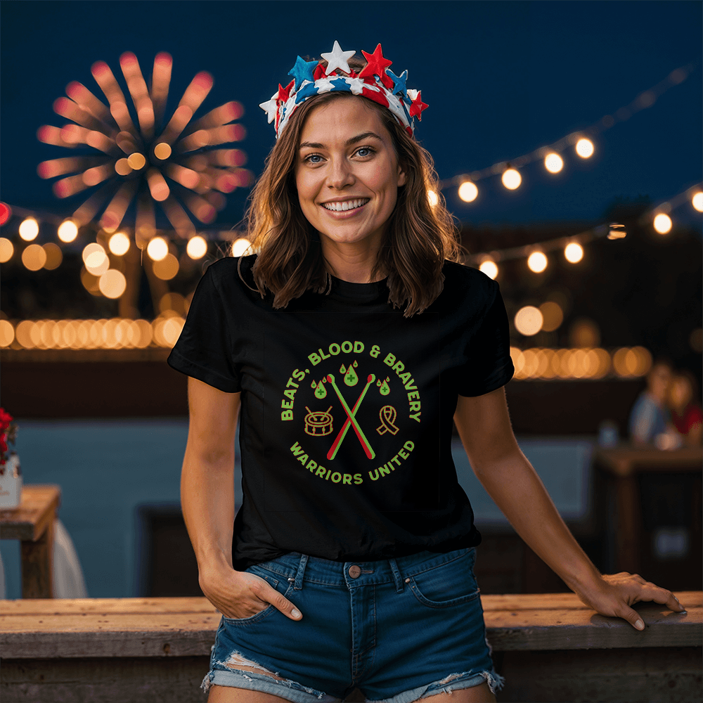 Beats, Blood & Bravery T-Shirt is more than a T-shirt — it shows the symbols of strength for drummers, fighters, and chronic kidney disease warriors, this T-shirt carries the pulse of resilience. With every stitch, it honors your rhythm and your bravery. Whether you’re on the stage, in recovery, or showing support — wear it with pride warriors and keep the pulse going.